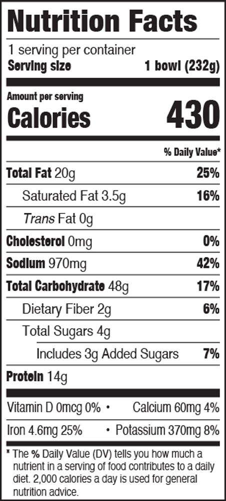 Cooked Ramen Noodles (Water, Enriched Flour [Wheat Flour, Niacin, Reduced Iron, Thiamine Mononitrate, Riboflavin, Folic Acid], Modified Food Starch, Contains Less Than 2% Of: Vital Wheat Gluten, Salt, Potassium Carbonate, Sodium Carbonate, Egg Whites), Water, Spinach, Sesame Paste, Sesame Oil, Garlic Chives, Soy Sauce (Water, Soybeans, Wheat, Salt), Sweet Cooking Rice Wine (Water, Mirin [Water, Rice, Alcohol, Salt, Enzyme, Koji {Aspergillus Oryzae}], Sugar, Lactic Acid), Less Than 2% Of: Canola Oil, Textured Soy Protein Concentrate, Sugar, Modified Food Starch, Palm Oil, Peppercorn Flavored Oil (Soybean Oil, Sichuan Peppercorn Flavor), Chili Oil (Soybean Oil, Dried Chili Peppers), Garlic, Salt, White Distilled Vinegar, Soy Sauce Powder (Soy Sauce [Soybeans, Wheat, Salt], Maltodextrin, Salt), Salted Sake (Water, Rice, Koji [Aspergillus Oryzae], Salt), Soy Lecithin, Oyster Flavored Sauce (Water, Sugar, Salt, Oyster Extractives [Oyster, Water, Salt], Cornstarch), Yeast Extract, Ginger, Spices.